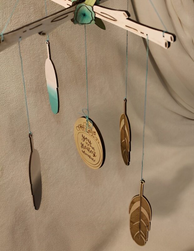 این محصول خاص با الهام از آویزهای سرخپوستان آمریکایی طراحی شده است. در مرکز این آویز گهواره چوبی یک مدال دایره شکل با متن حکای شده you are our greatest adventure ( تو بزرگ ترین ماجراجویی ما هستی) 😍😍 وجود دارد و با 4 پر در اطاف مدال تزیین شده است.