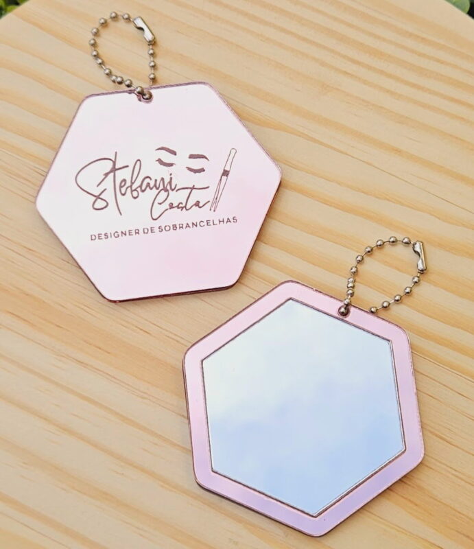 ساختهشده از پلکسی گلاسه ۳ میلیمتر، این محصول هم مقاومه و هم سبک. روی یک سمتش، آینهی شفاف و باکیفیت قرار گرفته و سمت دیگه با پلکسی رنگی تزئین شده که امکان چاپ یا حکاکی لوگوی اختصاصی رو هم داره. زنجیر فلزی کوچیکی که بهش وصل میشه، امکان استفاده به عنوان جاکلیدی یا آویز کیف رو هم فراهم کرده. ✨