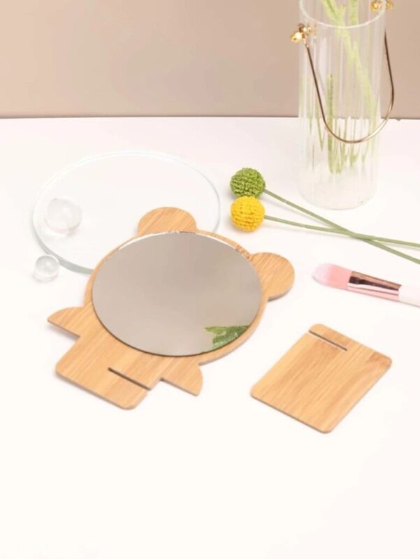 این آینه از پلکسی آینهای گرد و با کیفیت تشکیل شده و روی پایهای از چوب سه لایه به شکل خرس نصب میشود. طراحی جمعوجور و وزن سبک باعث میشود جاگیری آسانی روی انواع میز داشته باشد.