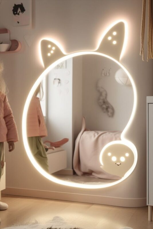 مناسب برای نصب روی دیوار اتاق خواب کودک، کنار تخت، در فضای بازی یا حتی در سالن مهدکودک و اتاق نوزاد. این آینه میتونه نقش چراغ خواب ملایم، دکور تزئینی فانتزی و آینه شخصی کودک رو همزمان ایفا کنه. یک انتخاب عالی برای سیسمونی یا هدیهای خاص و کاربردی.