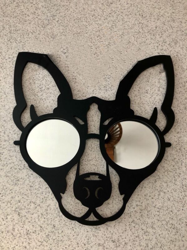 این محصول از پلکسی مشکی و پلکسی آینهای ساخته شده، طراحی آن به شکل چهره سگ با عینک آینهای است و جلوهای فانتزی و مدرن دارد.