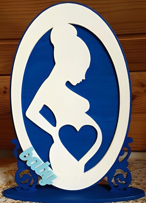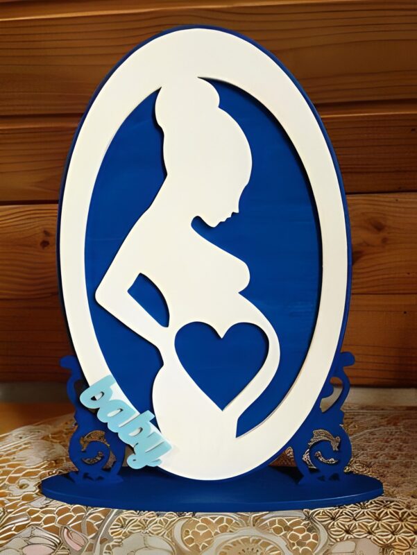 استند حاملگی مدل TH_77572 طرح و هنر یک قاب عکس شیک و جذاب است که عکس نوزاد در راه تان را به نمایش می گذارد. این قاب عکس چوبی با پس زمینه آبی رنگ طراحی و سیلوئت مادر هم به رنگ سفید است و یک ترکیب شیک و جذاب به وجود آورده است.