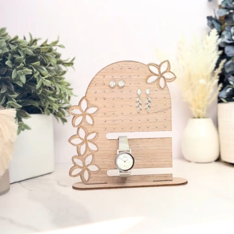 اگر دنبال یه جای شیک و جمعوجور برای نظم دادن به گوشوارهها، ساعت و اکسسوریهای روزمرهات هستی، این استند دکوراتیو چوبی دقیقا همون چیزیه که لازمه! ✨⌚