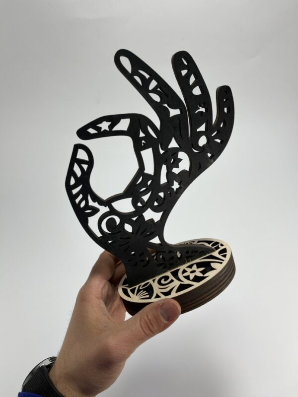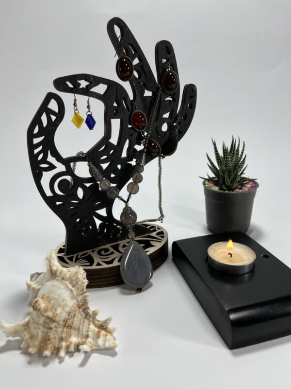 استند زیورآلات طرح دست مدل TH_49689، یک انتخاب بینظیر برای نمایش و نگهداری زیورآلات شماست. این محصول با متریال ام دی اف ساخته شده و طراحی منحصر به فرد دست، جلوهای زیبا و دکوراتیو به فضای شما میبخشد. رنگ پسزمینه مشکی این استند، علاوه بر زیبایی، باعث میشود زیورآلات شما به بهترین شکل ممکن به چشم بیایند.
