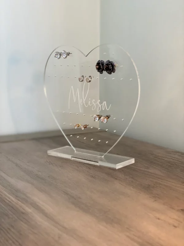 این استند گوشواره پلکسی را می توان از هم جدا کرد و به راحتی آن را حمل و نقل و نگهداری کرد. این استند زیوآلات پلکسی بهترین راه برای مرتب کردن و منظم نگه داشتن گوشواره های تان است. ما می توانیم این استند خاص رابرای شما شخصی سازی کنیم و نام مورد نظرتان را در روی این استند درج کنیم. لطفاً نام مورد نظرتان را همانطور که می خواهید در روی استند شخصی سازی ظاهر شود وارد کنید.
