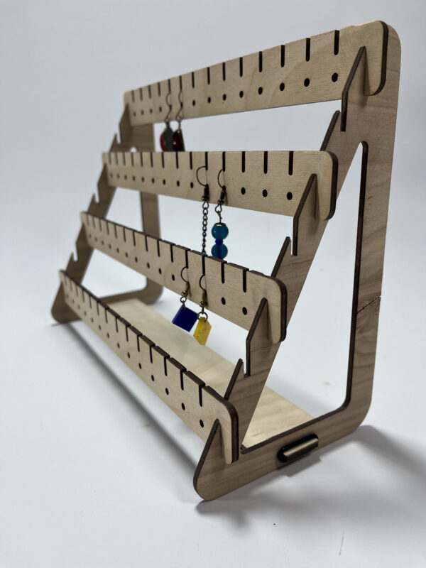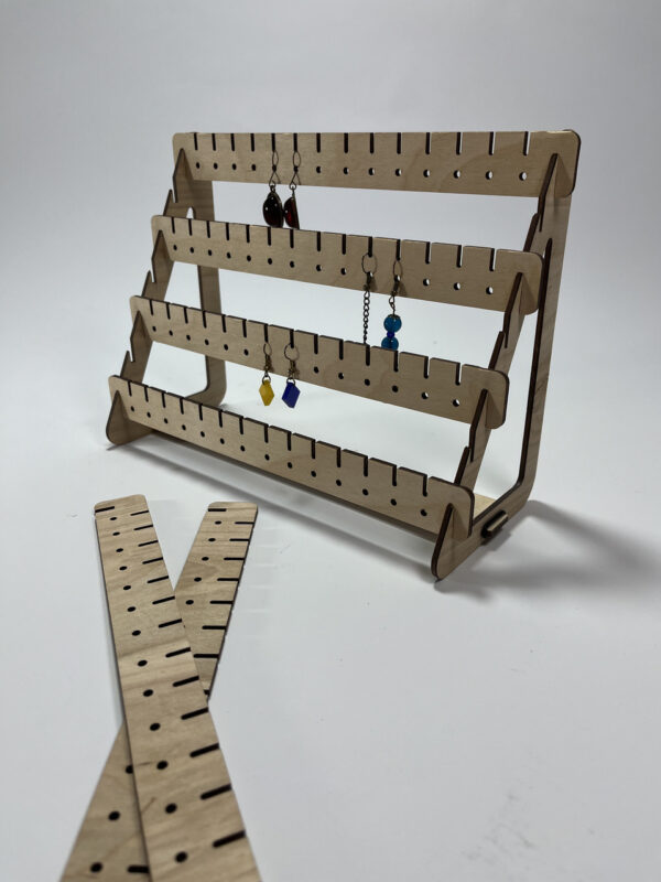 داستان طراحی این محصول به این صورت است که طراح این استند خاص، یک دختر است که به اکسسوری ها خصوصا گوشواره ها علاقمند است و از شدت کمبود جا برای نگهداری گوشواره هایش خسته شده بود و می خواست تمام گوشواره و گلگوش هایش را در یک جا به صورت ردیف و مرتب داشته باشد، پس ایده طراحی این استند زیورآلات چوبی به ذهنش رسید و آن را اجرا کرد.