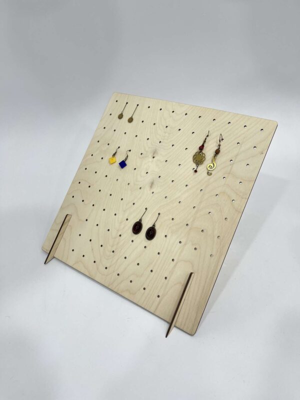 استند سوراخدار نمایش گوشواره مدل TH_15198 طراحی شده تا گوشوارههای خاص و دستساز شما رو با بهترین جلوه در معرض دید قرار بده. این استند از چوب سهلایه با کیفیت ساخته شده و با شبکهای از سوراخهای منظم، امکان چیدمان متنوع انواع گوشواره آویزی، میخی و دستساز رو فراهم میکنه 🎀