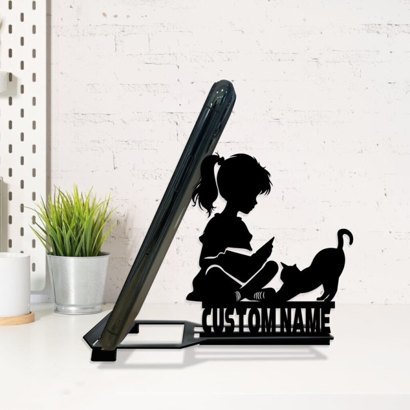 استند موبایل دختر با نام اختصاصی یک انتخاب عالی برای میز تحریر کودکان، میز کار مادرها و حتی به عنوان هدیهای خاص برای دوستداران کتاب و حیوانات خانگی است. مناسب برای استفاده روزمره، تماشای ویدیو، تماس تصویری یا مطالعه از روی گوشی 📱🐾