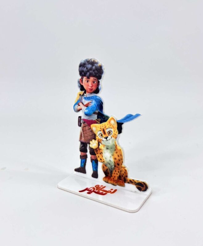 ساخته شده از پلکسی شفاف یا سفید با ضخامت مناسب و چاپ رنگی مستقیم با تکنولوژی فلتبد. طراحی برش دقیق با شکل کاراکتر و لبههای نرم، سطح براق و زیبا. کاملاً ایستاده و سبک برای استفاده رومیزی.