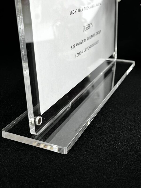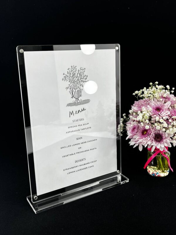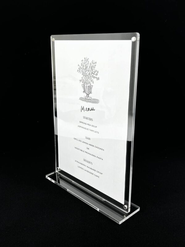این استند شفاف و جذاب مناسب استفاده در محیطهای حرفهای مانند رستورانها، کافهها، نمایشگاهها، دفاتر کاری و مطبهاست. برای نمایش منوی روز، پیام خوشآمدگویی، دستورالعمل یا معرفی محصول، این استند یک انتخاب بیرقیب است 🏷️💼.