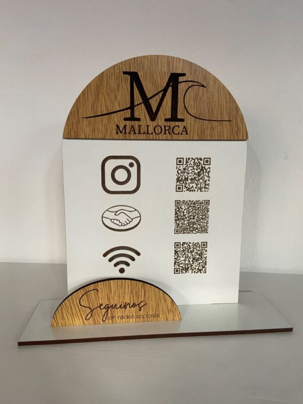این استند از MDF مرغوب ساخته شده و دارای طراحی ایستاده رومیزی با حکاکی دقیق لیزری است. لوگو، متن و QR کدها با ظرافت روی بدنه درج میشوند تا بیشترین وضوح و جذابیت را داشته باشند.