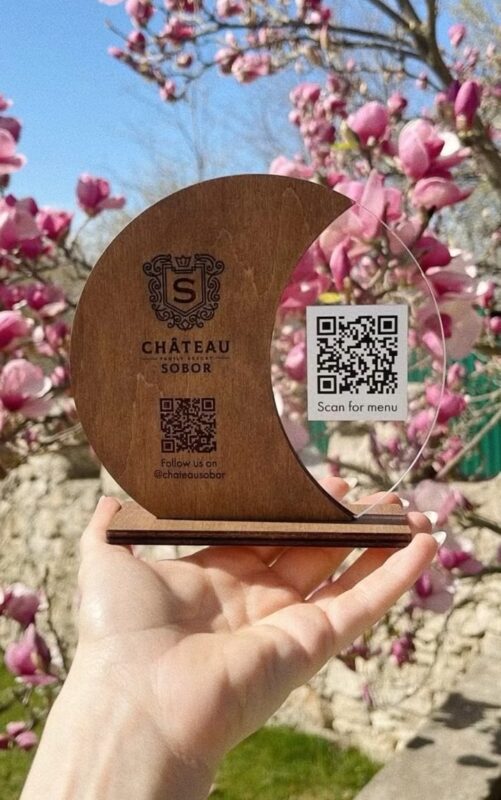 این استند از چوب طبیعی با ضخامت ۳ میلیمتر ساخته شده و در کنار بخش پلکسی شفاف، جلوهای مینیمال و مدرن ایجاد کرده است. طراحی منحنی خاص این استند باعث میشود که QR کد کاملاً در مرکز توجه قرار گرفته و بهراحتی قابل اسکن باشد.