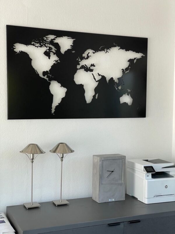 تابلوی دکوری نقشه جهان با طراحی خاص و برشهای دقیق لیزری، ترکیبی از هنر و کارایی را ارائه میدهد. این اثر هنری، ظرافت نقشه جهان را به زیباترین شکل ممکن به تصویر کشیده است.