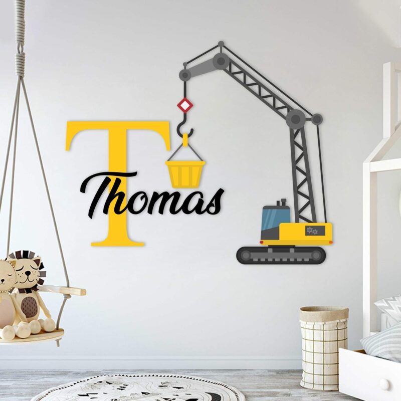 تابلو دیواری اسم کودک طرح جرثقیل مدل TH_93332
