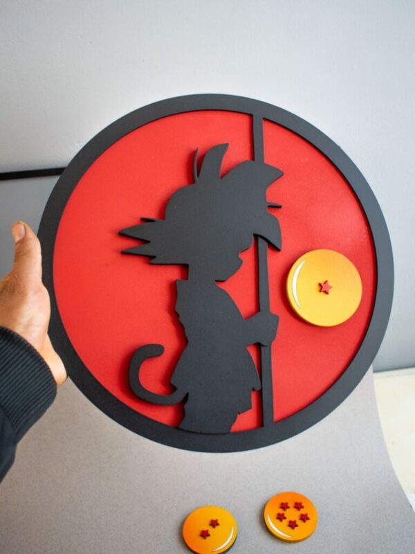 تابلو دیواری طرح دراگون بال با الهام از سیلوئت شخصیت اصلی داستان یعنی گوکو در کودکی طراحی شده و در یک ترکیب جذاب از رنگهای مشکی، قرمز و زرد، با MDF سهمیل ساخته شده. تمام بخشها با برش لیزری دقیق و مونتاژ تمیز کنار هم قرار گرفتن تا یک دکور دیواری مدرن، هنری و خاص خلق بشه.