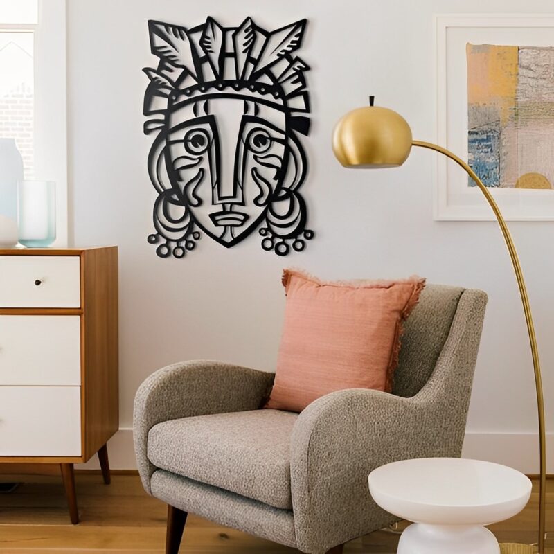تابلو دیواری طرح سرخپوست مدل TH_48748 طرح و هنر که با الهام از ماسک ها و صورتک های قبایل سرخپوست آمریکایی طراحی و تولید شده است؛ می تواند ایده ای خاص و جذاب برای تغییر و یا بازآفرینی دکوراسیون خانه یا محیط تان باشد. این تابلو دیواری اثر خاص و جذابی بر دکوراسیون تان خواهد داشت. 😍