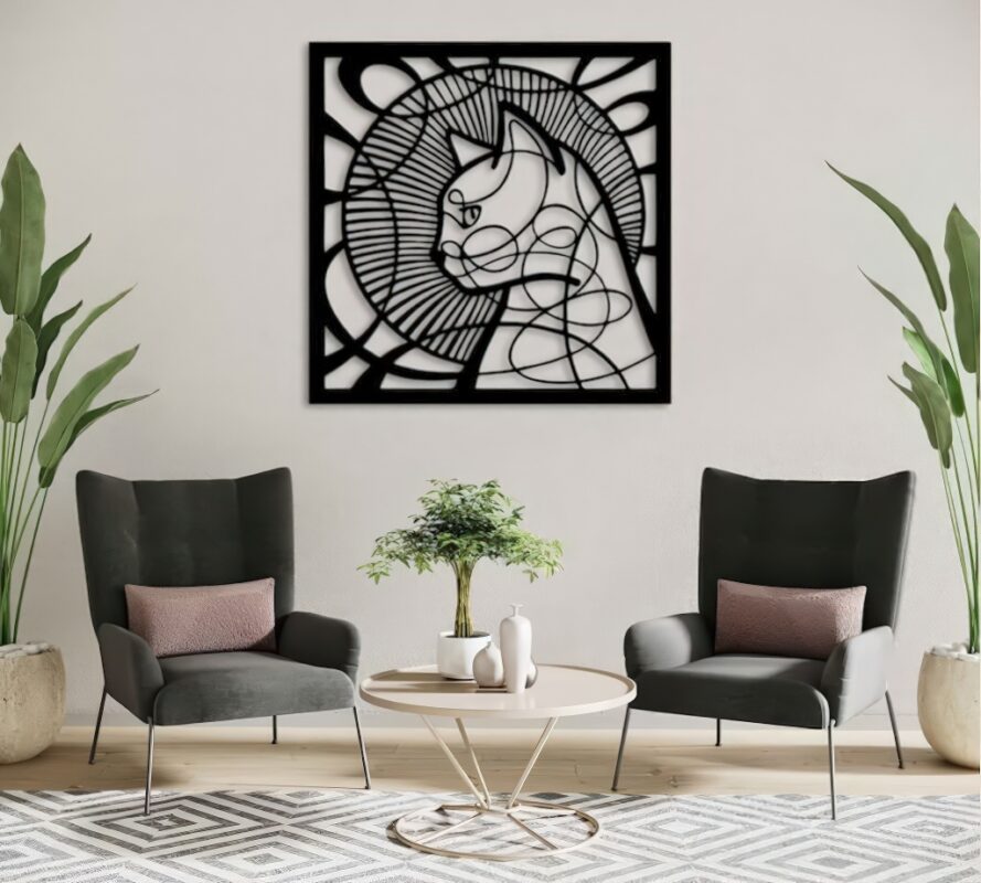 این تابلو از چوب سه لایه مرغوب با برش لیزری ساخته شده و دارای قاب مشکی مینیمال است. خطوط و فرم انتزاعی گربه، جلوهای هنری و مدرن به فضا میبخشد. ابعاد تابلو قابل سفارش با توجه به نیاز و سلیقه شماست.
