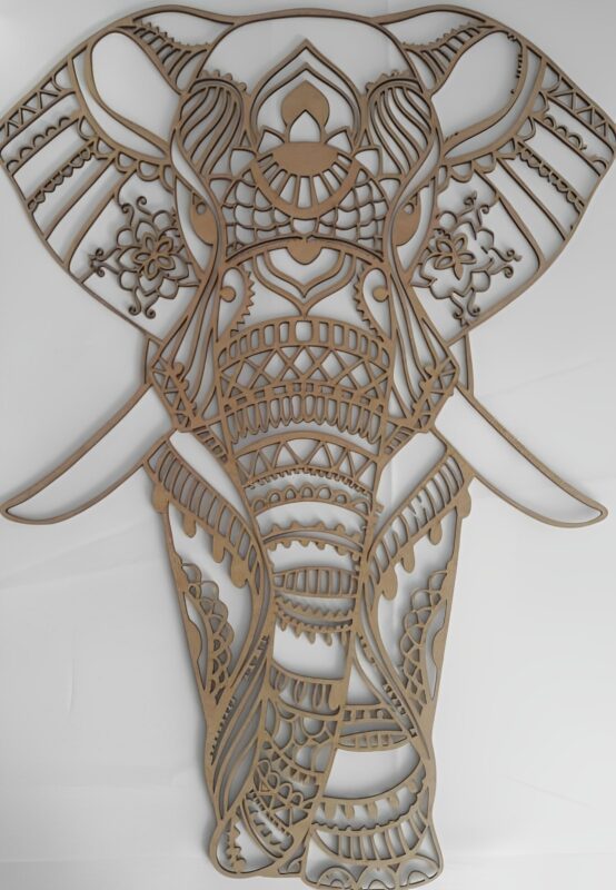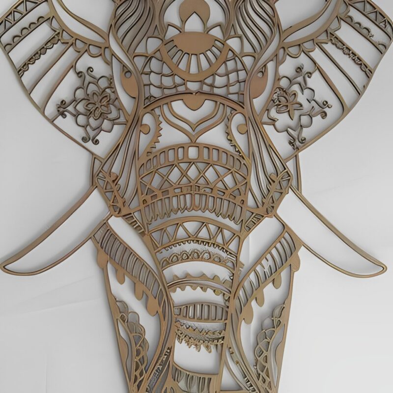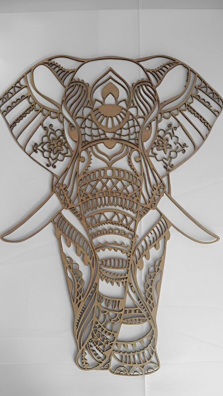 فیل نماد شادی، خوش شانسی، انرژی فمنین و برکت است و با ترکیب با نماد ماندالا، یک تابلو دیواری چوبی اعجاب انگیز درست شده که گرفتگی های انرژی و سنگینی محیط را برطرف کند.