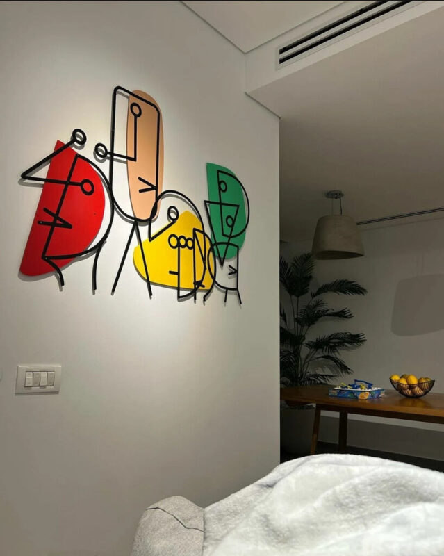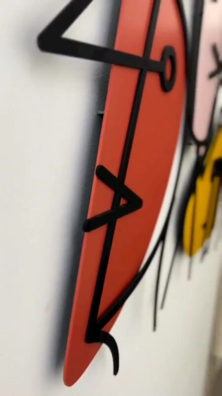 این تابلو از **چوب سهلایه روسی و MDF با ضخامت ۳ میلیمتر** ساخته شده و دارای طراحی انتزاعی با رنگهای مدرن و متناسب است. **برشهای دقیق و ترکیب لایههای چوبی** جلوهای برجسته و خاص به تابلو بخشیدهاند. طراحی سبک خطی، با رنگهای زرد، آبی و قرمز ترکیب شده تا حس هنری و مینیمال را در فضا تداعی کند.