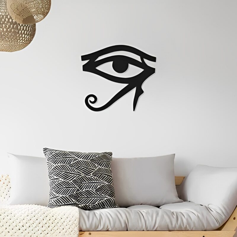 تابلو دیواری چشم جهان بین مدل TH_34923 طرح و هنر با الهام از آثار هنری، کتیبه و سنگ نوشته های کشف شده در مصر باستان طراحی و تولید شده است. در مصر باستان چشم حوروس نماد محافظت از انرژی های منفی، قدرت پادشاه و سلطنت او، سلامت بوده است. این چشم منسوب به ایزدبانو وادجت است. باید به این نکته اشاره کرد که در مصر باستان هم به چشم زخم اعتقاد داشتند و به نوعی این نماد، به یک نماد محافظتی در برابر چشم زخم و انرژی منفی شناخته می شده است.