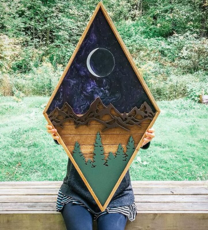 تابلو دیواری چوبی طرح کوهستان مدل TH_44168