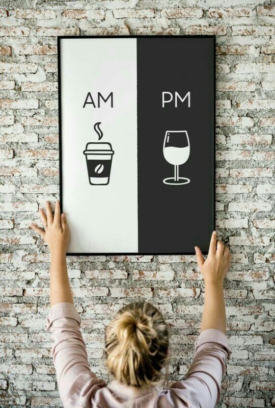 تابلو دیواری کافه طرح AM/PM مدل TH_14985 یک انتخاب مدرن و خلاقانه برای دکوراسیون داخلی کافه، منزل یا دفتر کاری شماست. این تابلو با الهام از سبک زندگی روزمره طراحی شده و دو حس متفاوت صبح و عصر را در یک اثر هنری به تصویر میکشد. ☕🍷