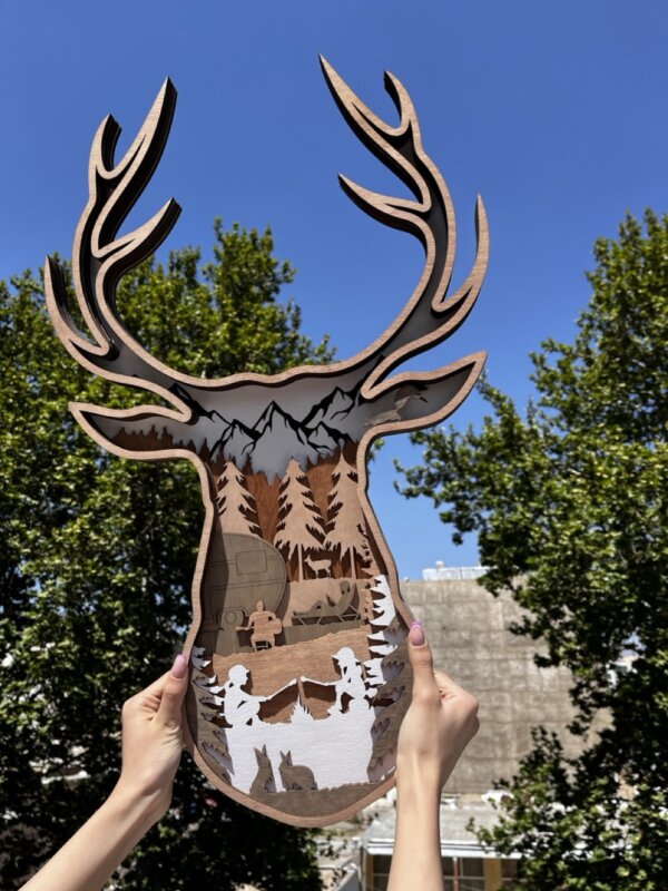 آیا به دنبال یک تکه هنری خارقالعاده برای تزئین فضای خود هستید؟ پس حتما بهترین انتخاب برای شما تابلو دیواری گوزن چندلایه مدل TH_94145 است! این تابلو، با طرح گوزنی خیرهکننده که در کنار کمپ، کوه، درختان، حیوانات و انسانها قرار گرفته، به شما احساسی عمیق از اتصال با طبیعت و وحشیگری میدهد.