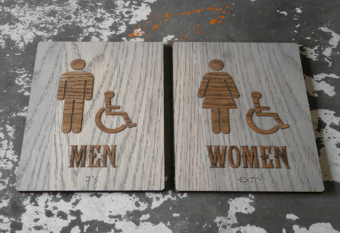تابلو راهنمای سرویس بهداشتی معلولین از MDF با ضخامت ۳ میلیمتر ساخته شده و طراحی آن شامل نماد افراد معلول به همراه متنهای مشخصکننده است. سطح تابلو با دقت بالا برش خورده و دارای کیفیتی بالا برای استفاده طولانیمدت است.