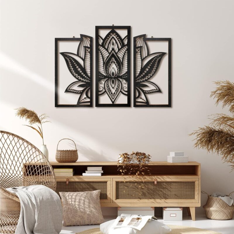 این محصول بهصورت برش لیزری دقیق ساخته شده است که باعث میشود جزئیات ظریف طرح گل لوتوس بهخوبی نمایان شوند. ترکیب طرح سنتی و مینیمال این تابلو، آن را به یک گزینه عالی برای اتاق نشیمن، دفاتر کاری، سالنهای پذیرایی و فضاهای هنری تبدیل کرده است.