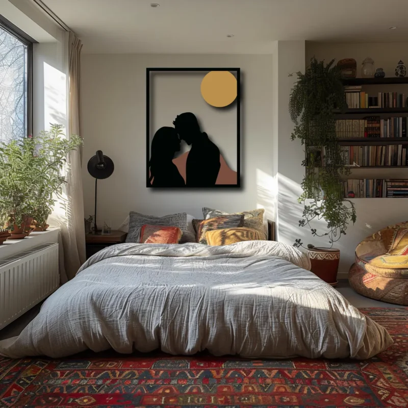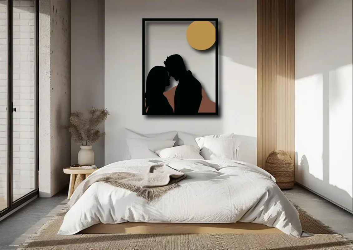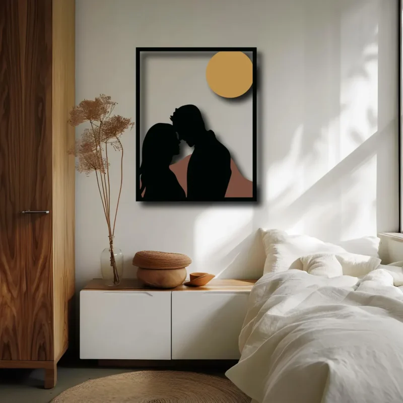 تابلو طرح سیلوئت زوج عاشق گزینهای عالی برای دکوراسیون داخلی رمانتیک، هدیهای خاص برای زوجها، چیدمان شیک در کافیشاپها، گالریهای هنری و فضاهای دنج و احساسی است. اگر به دنبال یک اثر **احساسی، زیبا و ماندگار** هستید، این تابلو بهترین انتخاب خواهد بود. ❤️✨