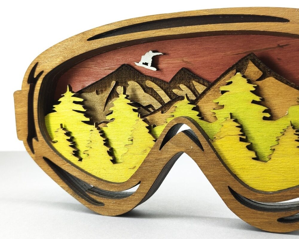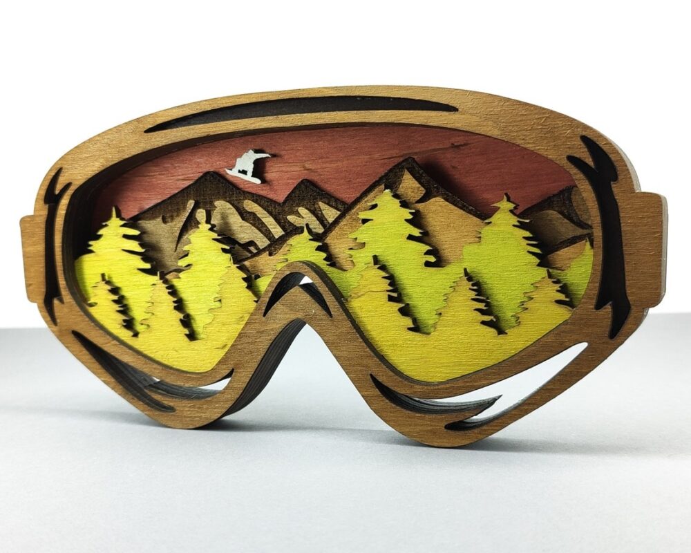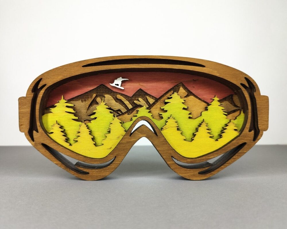 - طرح: عینک اسکی با نمای کوه و درخت