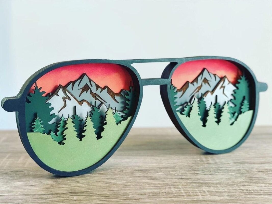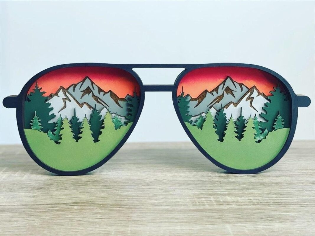 تابلو عینک طرح کوهستان با جزئیاتی که در داخل عینک وجود دارد، تصویری از کوههای سر به فلک کشیده و درختان بلند جنگلی را تداعی میکند. رنگهای گرم و هماهنگ استفاده شده در این تابلو، جلوهای دلنشین و طبیعی به آن بخشیده و هر بینندهای را مجذوب خود میسازد.