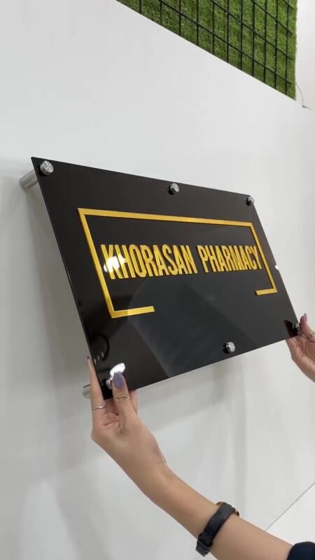 ترکیب حروف طلایی آینهای با پسزمینهی تیره، حس پرستیژ و حرفهای بودن را القا میکند و برای فضاهای مدرن مانند داروخانهها، مطبها، دفاتر کاری، شرکتها و سالنهای زیبایی بسیار مناسب است. متریال مورد استفاده در ساخت این تابلو، هم دوام بالا دارد و هم بهراحتی تمیز میشود؛ بنابراین سالها بدون افت کیفیت میماند ✨