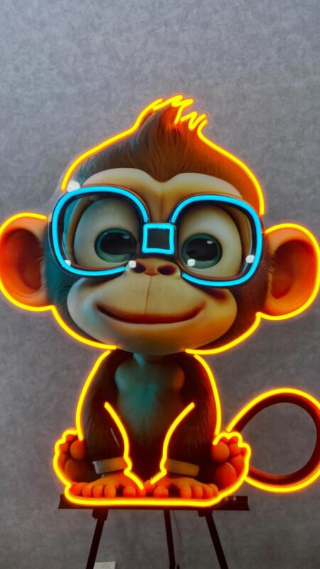 بدنهی پلکسی مقاوم با ضخامت استاندارد ۳ میلیمتر باعث شده وزن سبک و ماندگاری بالا داشته باشه. برش دقیق لیزری و نورپردازی یکدست نئون باعث شده که هر جزئیات کوچیکی از گوشهای بامزه تا انتهای دم این میمون، با ظرافت و زیبایی نمایش داده بشه. همین باعث میشه توی هر محیطی که نصبش کنی، از اتاق خواب بچهها گرفته تا دکور خاص یک فروشگاه یا دفتر، به چشم بیاد و نظر همه رو جلب کنه. 🤩