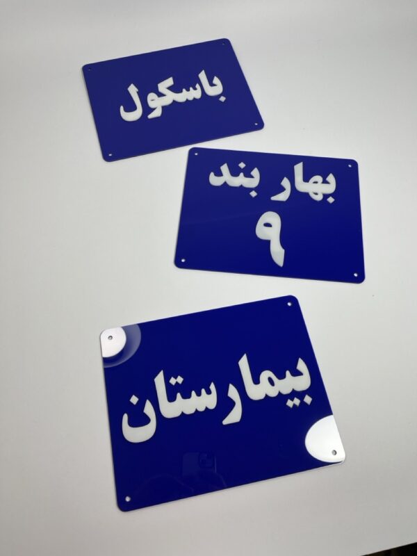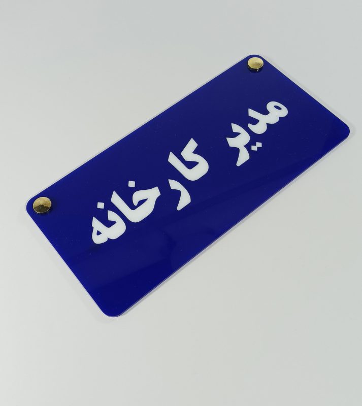 این تابلو در فرم مستطیل و به رنگ آبی کاربنی ساخته می شود. تا سبک کلاسیک و اداری محیط به زیبایی و درستی حفظ شود.