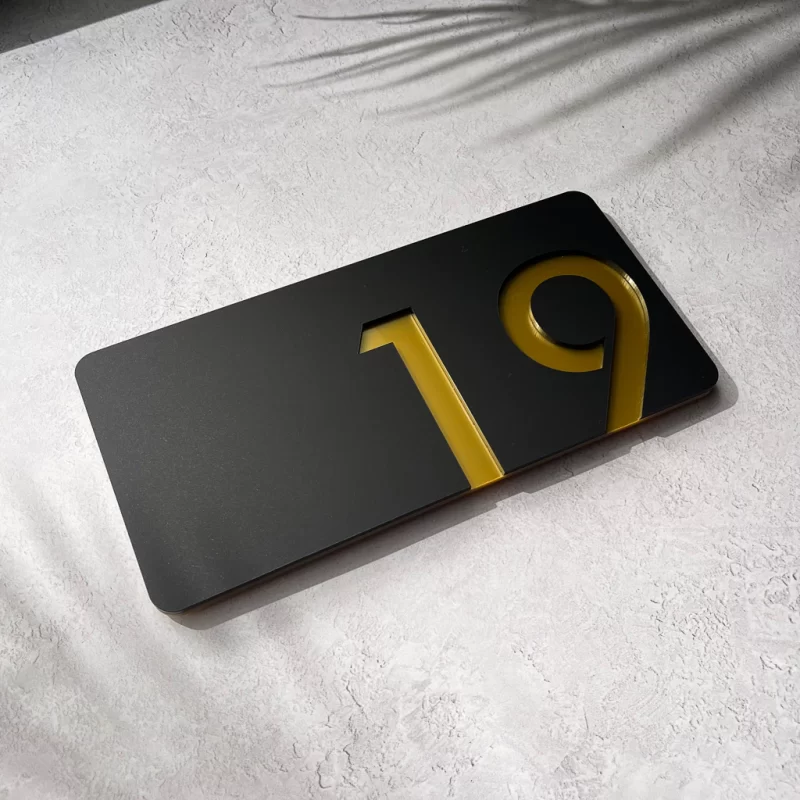 پلاک های مختلفی از نظر جنس در بازار موجود است از قبیل پلکسی ، استیل ، چوب و … که این تابلو پلاک از جنس پلکسی مشکی و پلکسی آینه ای طلایی طراحی و ساخته شده و نصب آن بسیار آسان است