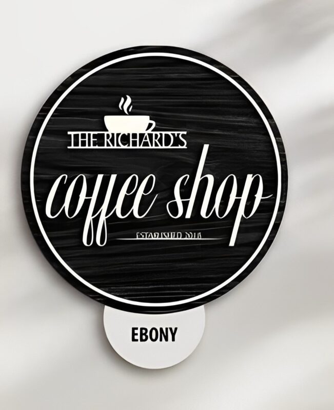 این تابلو پلاک کافه چوبی در یک فرم دایره ای شکل طراحی و تولید شده است و می توانید آن را با نام کافه و یا نام مورد علاقه تان به صورت اختصاصی داشته باشید فقط کافیست باکس قرار داده شده در سایت را پرکنید تا محصولی که به دست تان می رسد به صورت شخصی سازی شده باشد.