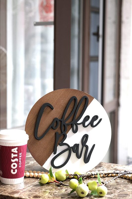 تابلو پلاک کافه مدل TH_57121 طرح و هنر یک تابلوی گرد با برش های سه بعدی کلمات و رنگ های جذاب، فونت ظریف و طراحی زیباست که در آشپزخانه یا گوشه کافه تان شگفتانگیز به نظر می رسد. این تابلو تاثیر بصری خاص و جذابی بر روی دیوار میگذارد و یا برای تم کافه تان عالی است.