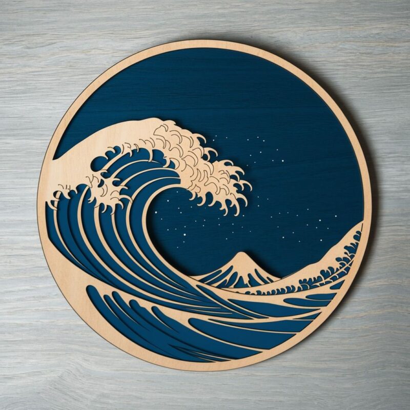 تابلو چوبی طرح موج ژاپنی مدل TH_93979