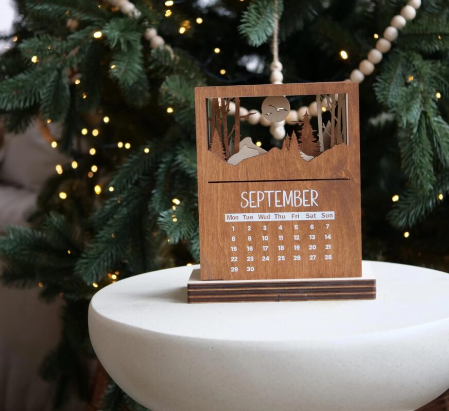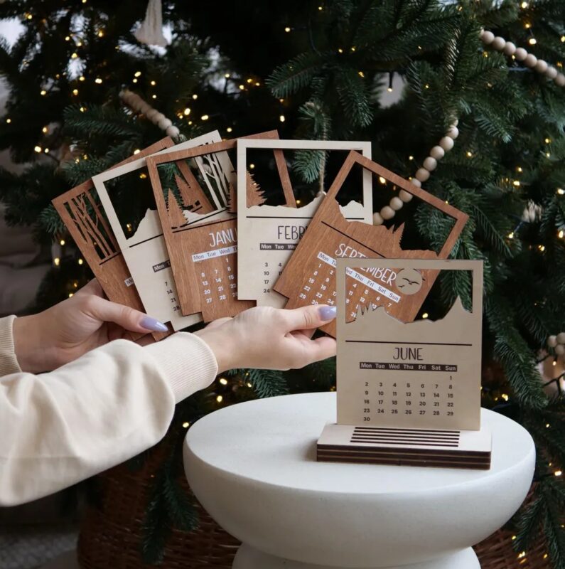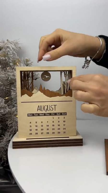 اگر دنبال یه تقویم خاص، متفاوت و دکوری برای میز کار یا فضای شخصیتون هستید، تقویم چوبی رومیزی مدل TH_39610 یه انتخاب شیک و هنریه! این تقویم با طراحی خاص و الهام گرفته از طبیعت، ترکیبی از چوب طبیعی و برشهای ظریف لیزریه که هر ماهش یه تصویر منحصربهفرد داره. 📆🌲