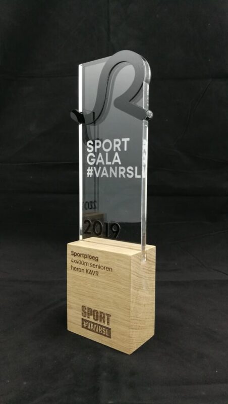 تندیس دارای صفحهای عمودی از پلکسی شفاف با نوشته و لوگوی حکاکی شده است که روی پایهای مکعبی از چوب طبیعی قرار گرفته. ترکیب شفافیت پلکسی و بافت چوب ظاهری بسیار شیک و متفاوت به آن داده است.