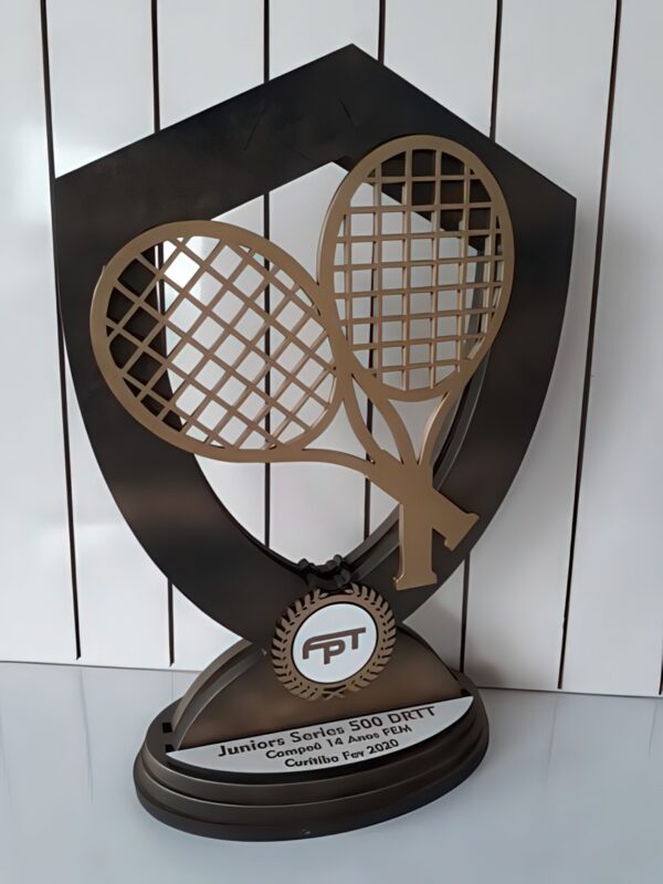 تندیس ورزشی طرح راکت تنیس یک انتخاب شیک و خاص برای علاقهمندان و قهرمانان رشتهی جذاب تنیس است. طراحی این محصول با الهام از دو راکت تنیس متقاطع، حس رقابت و انرژی مثبت را به نمایش میگذارد و جلوهای مدرن و متفاوت ایجاد میکند. متریال اصلی آن ترکیبی از چوب سهلایه و پلکسی شفاف و مقاوم است که باعث شده است این تندیس هم درخشش چشمنوازی داشته باشد و هم دوام بالایی برای سالها استفاده و نگهداری.