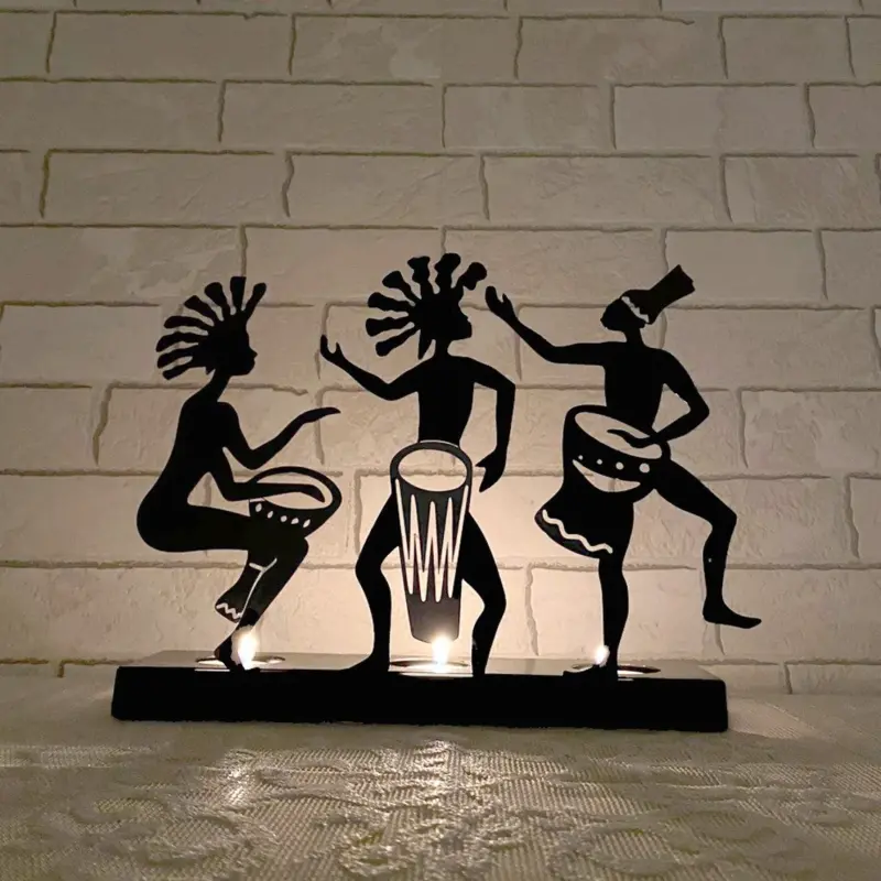 این جاشمعی جذاب علاوه بر زیبایی بصری، با قرار دادن شمعهای وارمر در زیر هر نوازنده، جلوهای خیرهکننده از نور و سایه خلق میکنه که فضا رو گرمتر، صمیمیتر و خاصتر میکنه. طراحی ظریف و دقیق با برش لیزری باعث شده خطوط بدن، جزئیات طبلها و حتی مدل موها بهخوبی مشخص باشن و روح هنری آفریقا رو به تصویر بکشن 🖤