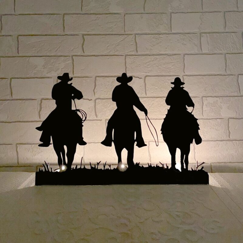 جنس این جاشمعی از پلکسی ۳ میل با کیفیت ساخته شده که با برش لیزری دقیق و تمیز، فرم دلخواه گاوچرانها رو بهخوبی درآورده. ترکیب نور شمع از پشت این طرح تیره، سایهای هنرمندانه و بینهایت چشمنواز روی دیوار میندازه و فضای خونه یا محل کارتو گرم و خاص میکنه.