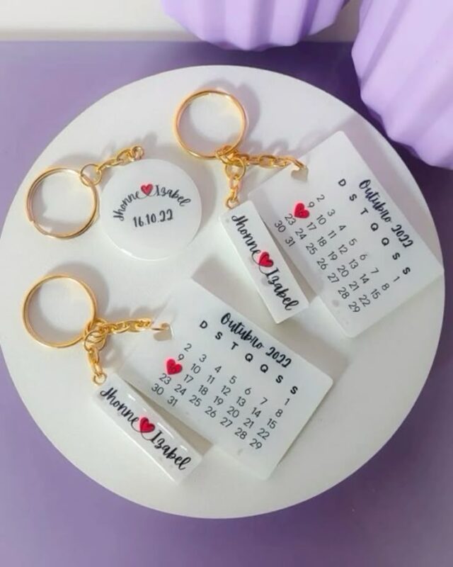 ساختهشده از پلکسی شفاف ۳ میلیمتر، دارای چاپ فلتبد با کیفیت بالا، طراحی تقویمی با انتخاب دلخواه ماه و سال، همراه با اسمهای سفارشی و زنجیر طلایی رنگ برای حلقه جاکلیدی.