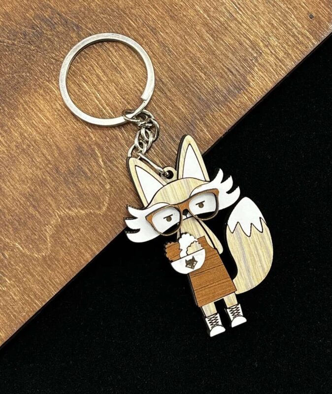 این جاکلیدی با دقت بسیار زیاد از ام دی اف با ضخامت ۳ میلیمتر ساخته شده و با ترکیب رنگهای طبیعی و حکاکیهای دقیق، تبدیل به یه اثر کوچک هنری شده. از فرم گوشها و پوزه تا کفشهای کارتونی و عینک فانتزی، همه چیز با جزئیات چشمنواز طراحی شده تا این روباه کوچولو یه همراه همیشگی و خاص باشه.