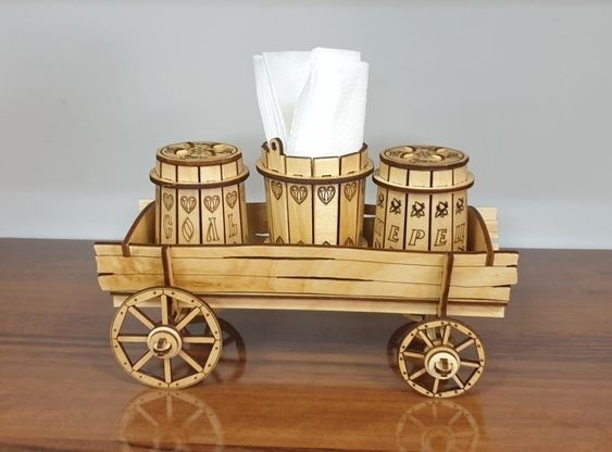این دکور چوبی با طراحی کارآمد و جذاب خود، شامل سه محفظه برای نگهداری دستمال کاغذی است و به صورت یک واگن کوچک زیبا طراحی شده است. جزئیات حکاکی شده روی چوب، به آن جلوهای خاص و هنری میبخشد.