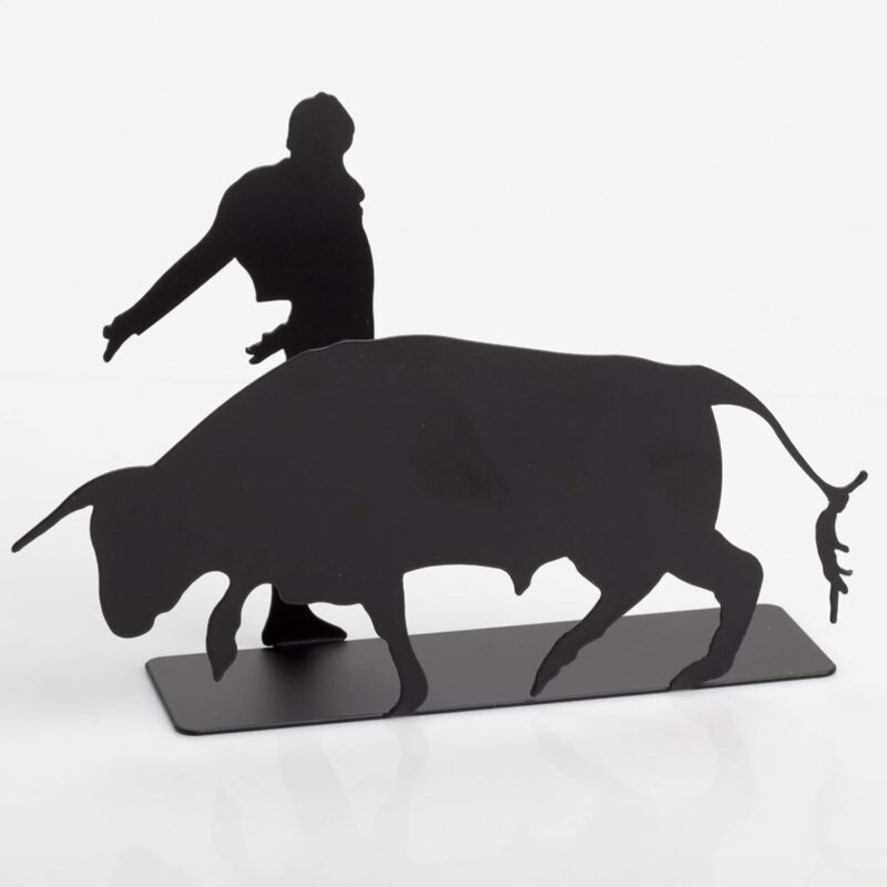 بدنهی این استند از پلکسی گلاس مشکی با ضخامت ۳ میلیمتر ساخته شده و دو فیگور اصلی – گاو وحشی و ماتادور – در دو طرف دستمالها قرار میگیرن. وقتی دستمال قرمز بینشون قرار میگیره، جلوهای کاملاً نمایشی و شبیه به میدان گاوبازی به وجود میاد! 😍