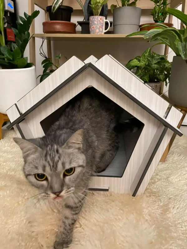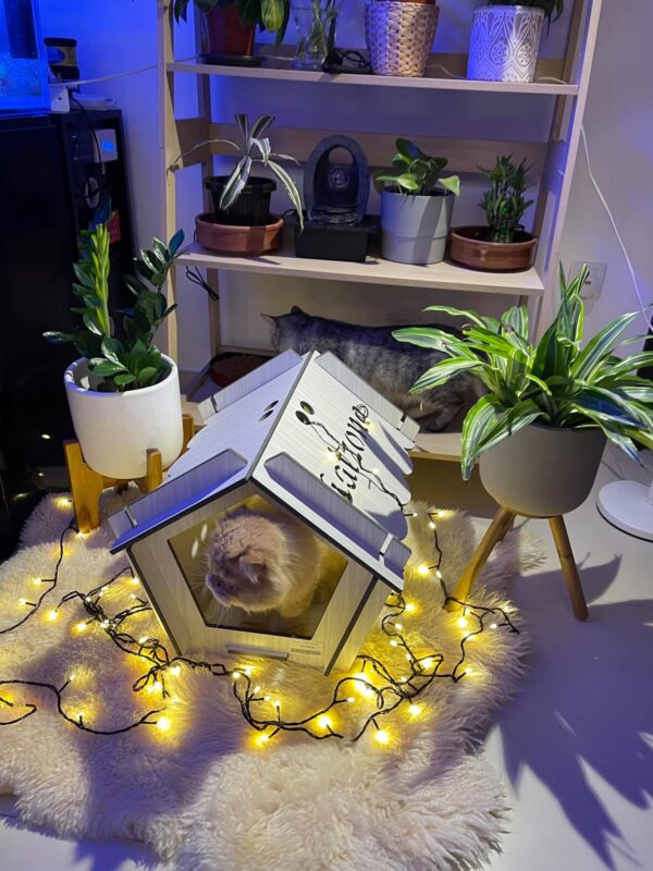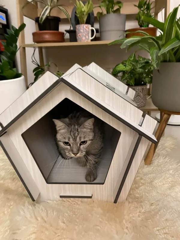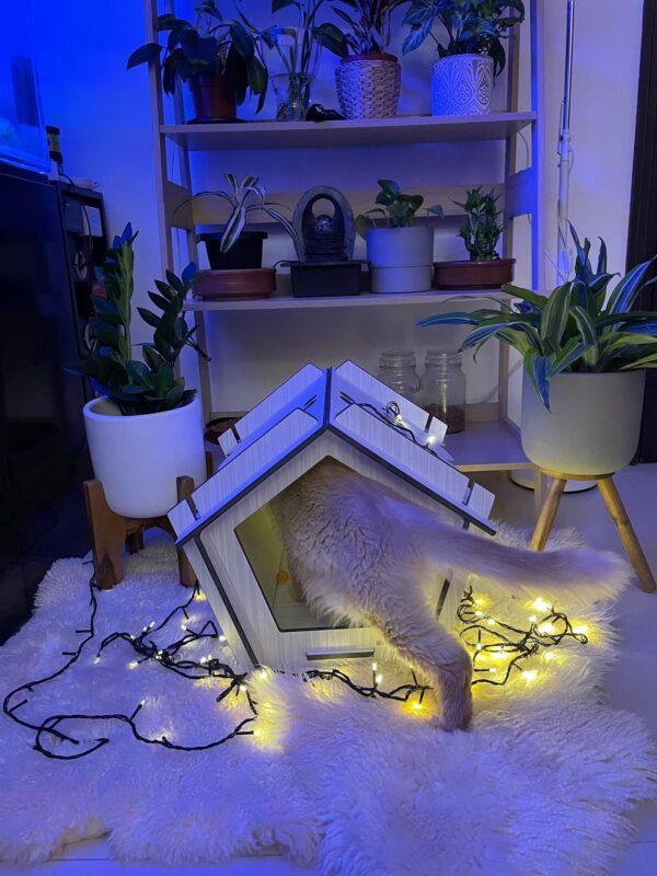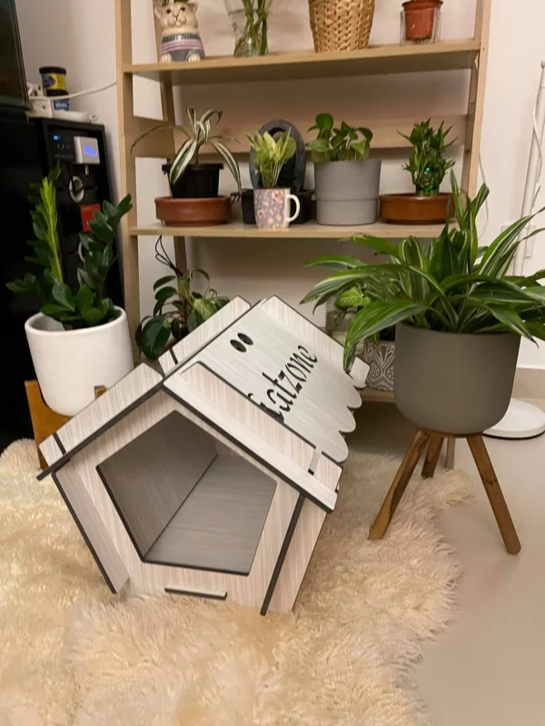 برش های هندسی موجود در این محصول باعث ایجاد یک فعالیت سرگرم کننده برای گربه شما می شود و او را درگیر یک بازی بی پایان می کند و تعاملی خاص که مورد علاقه شان است را امتحان می کنند. بهتر است برای گربه تان یک عامل جادویی اضافه کنید و تشک خواب مخملی به این خانه گربه چوبی اضافه کنید تا او در آرامش خاطر غرق در رویای های خودش شود. این محصول قطعاً یک هدیه زیبا است که شما و حیوان خانگی تان آن را دوست خواهید داشت! همچنین می توانید نام حیوان خانگی تان را در روی این محصول داشته باشید.