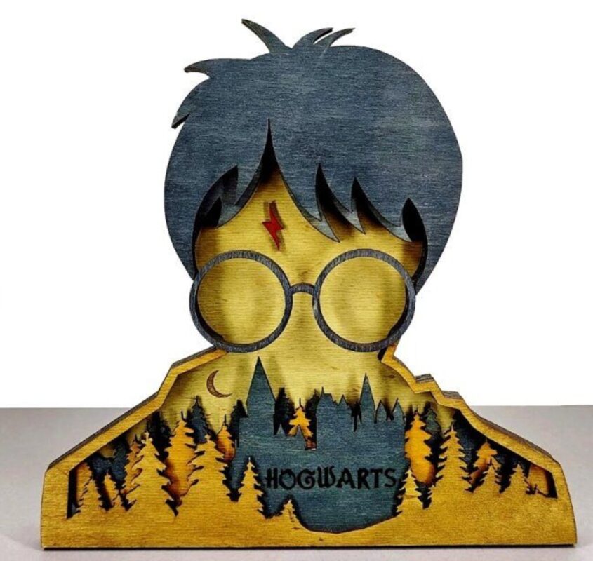 دکور از چند لایه چوب سهلایه تشکیل شده که با برش لیزری دقیق و حرفهای ساخته شدهاند. هر لایه با رنگآمیزی دستی، جزییات طرح هری پاتر، عینک گرد و منظره قلعه هاگوارتز را برجسته کرده است. ترکیب رنگها به صورت فانتزی و هنری، جلوهای سهبعدی و خاص ایجاد کرده و محصول به صورت ایستاده یا رومیزی قابل استفاده است.
